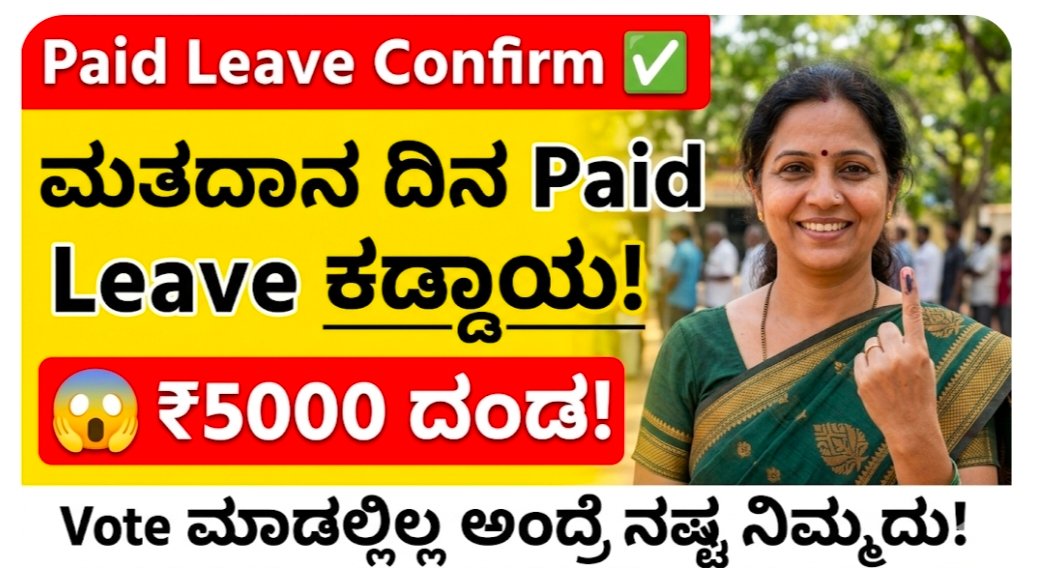 ಮತದಾನ ನಿಮ್ಮ ಹಕ್ಕು ಮಾತ್ರವಲ್ಲ, ನಿಮ್ಮ ಶಕ್ತಿ! Paid Leave ಸಿಕ್ಕಿದೆ — ಈಗ ಕಾರಣ ಬೇಡ. ಒಂದು ಮತ ದೇಶದ ಭವಿಷ್ಯ ಬದಲಾಯಿಸಬಹುದು. ನಿಮ್ಮ ನಿರ್ಧಾರವೇ ನಾಳೆಯ ಸರ್ಕಾರವನ್ನು ರೂಪಿಸುತ್ತದೆ. ತಪ್ಪದೆ ಮತಚಲಾಯಿಸಿ, ನಿಮ್ಮ ಶಕ್ತಿಯನ್ನು ತೋರಿಸಿ!